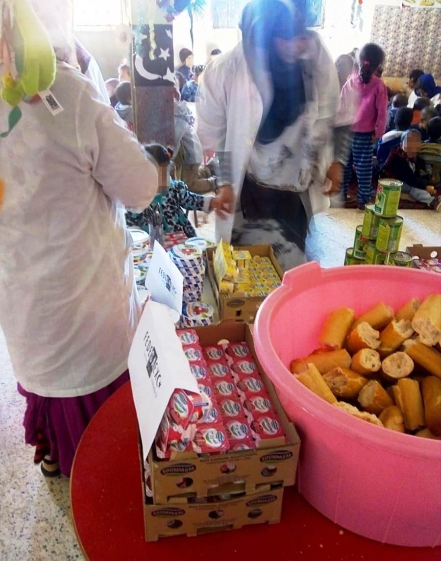 La primera fase del proyecto comienza con el apoyo a los desayunos en la guardería “El 27”, del campamento de Bojador, que cuenta con 203 niños y niñas escolarizadas. Un desayuno consistente en la distribución de yogures, pan y quesito, dátiles y huevos a lo largo de la semana.